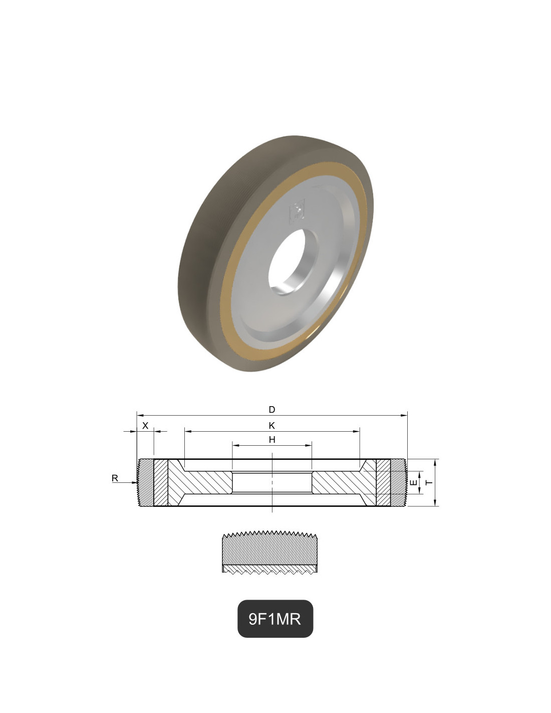 Rádiuosové diamantové kotouče s drážkami 9F1MR pro opracování skla, keramiky, kamene, bižuterie a kompozitních materiálů. Nástroje mohou být upraveny dle přání zákazníka. Pro úplnou nabídku nás prosím kontaktujte.