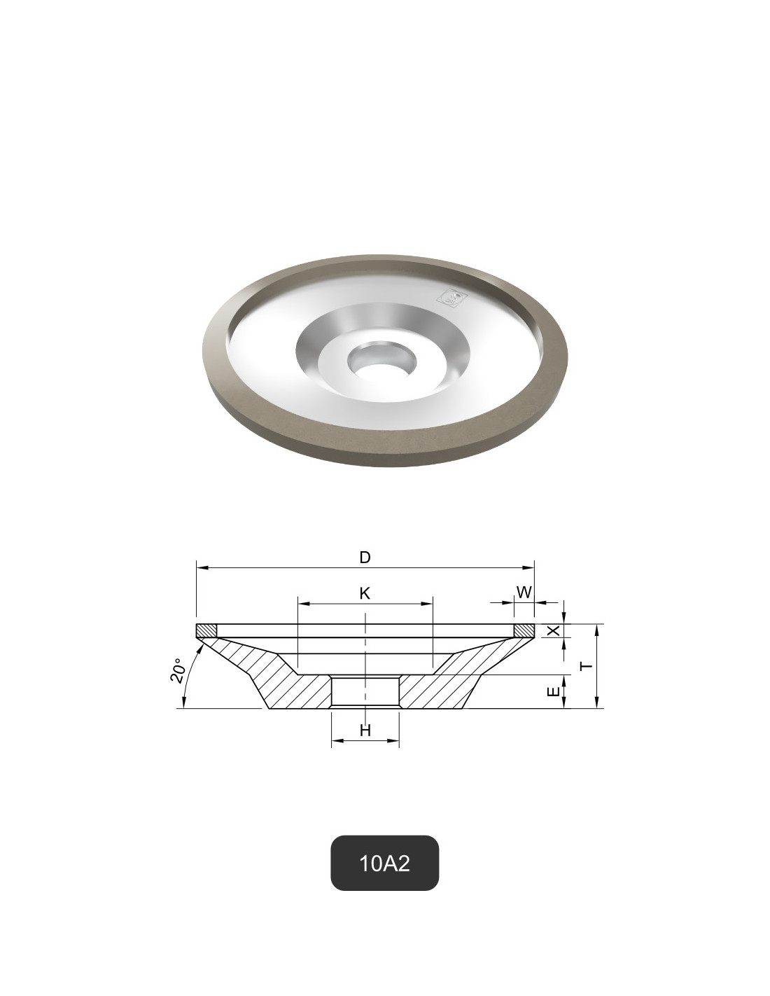 Diamond cup wheels 10A2 for processing glass, ceramics, stone, jewelry, and composite materials. Tools can be customized according to customer requirements..