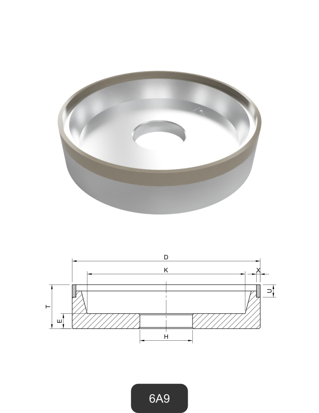 Meules boisseaux diamantées 6A9 | Meulage et découpe du verre et de la céramique